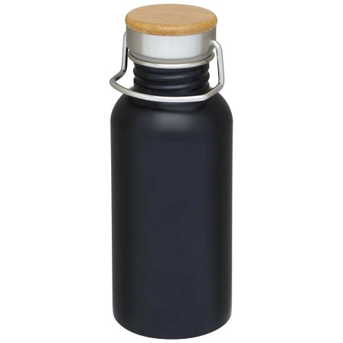 Single-walled stainless steel bottle with screw-on lid. The lid features a bamboo top, as well as a handle for easy carrying. Volume capacity is 550 ml. Presented in an Avenue gift box.Specs & Prices content